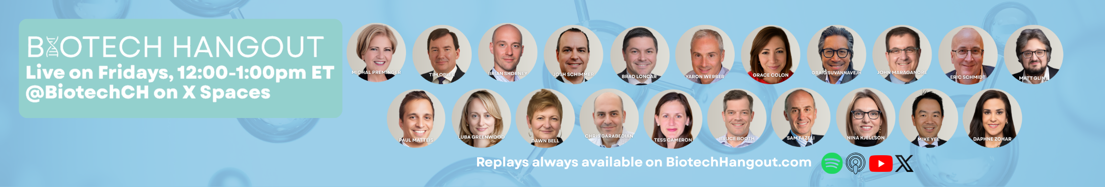 Join every Friday at 12:00 pm ET. Be sure to follow Biotech Hangout on X at @BiotechCH, as well as Daphne Zohar to be notified about new sessions in real time.